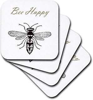 (set-of-4-Soft) - 3dRose Bee Happy Inspirational Chic Art - Soft Coasters, Set of 4 (cst_164562_1)