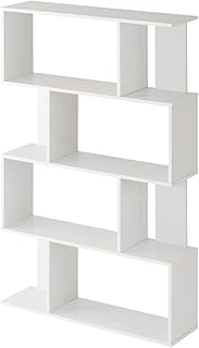 ぼん家具 シェルフ オープンラック 薄型 棚 s字 ディスプレイラック 間仕切り ワイドタイプ4段 ホワイト