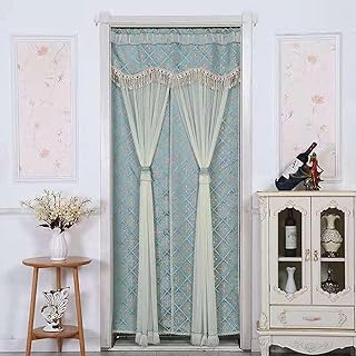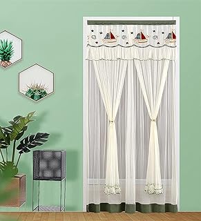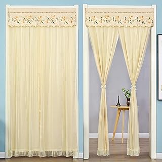 マジックテープ レース フリル 2重のれん 姫系 レイヤード タッセル付き 北欧 目隠し 間仕切り ロング カーテン 半遮光防蚊 和風 四季兼用 キッチン リビング 玄関 出入り口 洗面所 部屋 カフェ 90x 220cm B
