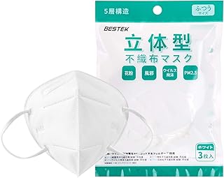 BESTEK マスク 立体型 不織布 マスク 5層構造 99%カット 日本機構機能検査済み ウィルス対策 花粉カット 飛沫防止 防塵抗菌 PM2.5対応 3枚入り MRMK01