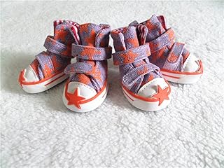 hqclothingbox 春夏秋 ペット用 猫&犬 星柄 デニム靴 通気 防水 滑り止め 耐摩耗性 (4, オレンジ)