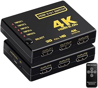 Vikrin HDMI 切替器 2.0 HDMI セレクター HDMI 切り替え 5入力1出力 4K60Hz HDCP2.2対応 自動手動切替機能搭載 USB給電ケーブル付き リモコン付き PS4 Pro、PS3、Xbox、Fire TV、ROKU、ラップトップ、Apple TV、DVDプレーヤーなど対応