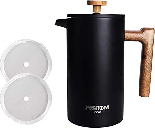 POLIVIAR フレンチプレス 1L コーヒープレス 真空断熱 保温 コーヒーメーカー french press ステンレス製 カフェプレス 大容量 軽量 コーヒー 紅茶 おしゃれ 分解洗浄 家庭用 漆黒 FPB10-JP