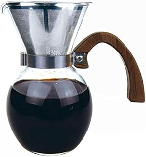 バンブーブラウンハンドル付きコーヒーサーバー Bamboo Coffee Server 5cup (650ml) 珈琲オイルもしっかり抽出オールステンレス極細ダブルメッシュフィルターセット