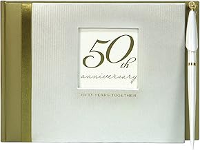 (Golden 50th Anniversary) - C.R. Gibson Guest Book with Pen, Space for 500 Names, Measures 25cm x 18cm - Golden 50th Anniversary