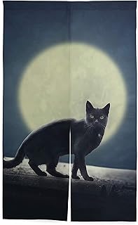 のれん 遮光 目隠し おしゃれ 暖簾 ロング 綿 カーテン 間仕切り 遮熱 黒猫 猫柄 ねこ アニマル ブラック かわいい 玄関 飲食店 インテリア 出入り口 レストラン 80X150CM