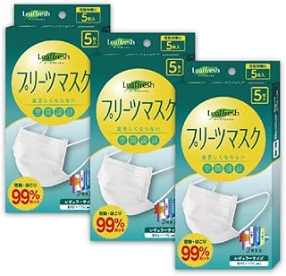 【全国マスク工業会員・BFE試験99%カット】立体3段構造 不織布 プリーツ マスク |5枚入り×3箱セット 男女兼用 (レギュラー サイズ)