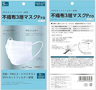 不織布3層マスクPro サージカルマスク5枚入×5個セット【全国マスク工業会】99%カットフィルター採用