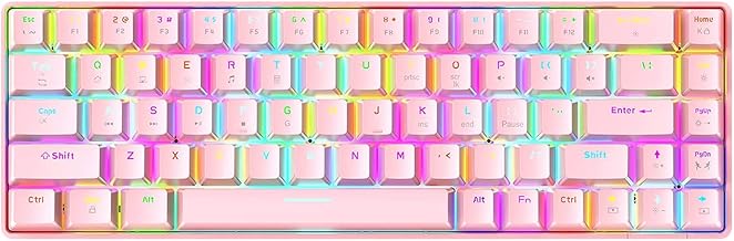 ゲーミングキーボード ピンクメカニカルキーボード コンパクト 青軸 68キー防衝突 ゲーム用キーボード 18種類のRGBバックライト Type C 有線 防水 打ちやすい 英語配列 ピンク(青軸)