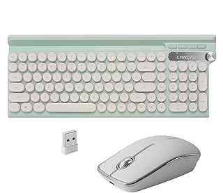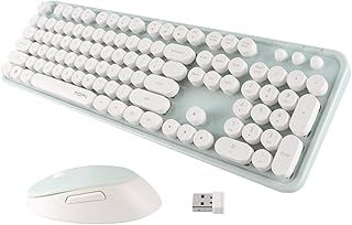 ワイヤレスキーボードマウスセット 2.4GHz無線接続 フルサイズ 大型キーボード バッテリー給電 タイプライター風 レトロ風 104キー おしゃれ 静音 かわいい 丸いキー 英語配列 防水 打ちやすい 人間工学 USBレシーバー付き PC/ノートパソコン/Windowsに対応 白 緑