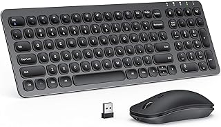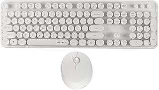 ワイヤレスキーボードマウスセット 大型キーボード 2.4GHz無線接続 バッテリー給電 104キー おしゃれ 静音 タイプライター風 レトロ風 かわいい 丸いキー us配列 フルサイズ 防水 打ちやすい 人間工学 pc用 パソコン用 多機種対応 Mac/Windowsに対応(ホワイト)