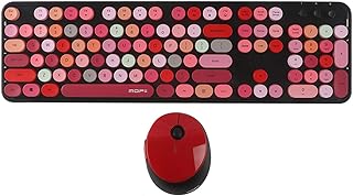 ワイヤレスキーボードマウスセット 大型キーボード 2.4GHz無線接続 バッテリー給電 104キー おしゃれ 静音キーボード タイプライター風 レトロ風 カラフル かわいい 丸いキー US配列 フルキーボード 防水 打ちやすい 人間工学 PC/ノートパソコン/Windowsに対応(赤)