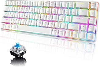 UrChoiceLtd MK68 ゲーミングキーボード メカニカル式 小型 英語配列 青軸68キー防衝突 ゲーム用キーボード 18種類のRGBバックライト Type C 有線 防水 打ちやすい (ホワイト 白)