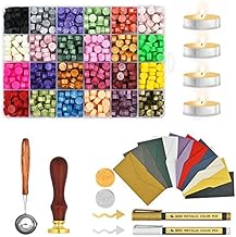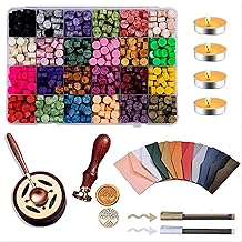 シーリングワックス セット 600個 24色 蝋封 スタンプ スプーン 炉 ティーキャンドル エンベロープ 専用油性ペン ワックスビーズ 手紙 招待状 封筒 装飾 手作りDIY