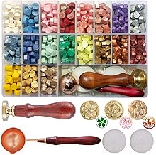 Amandakasa シーリングワックス 616セット 24色 ワックスビーズ スプーン 手作り ティーキャンドル 封筒 告白 招待状 手紙 DIY 無毒 招待状 祝福