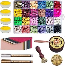 Sitengle シーリングワックス セット 蝋封 ワックスビーズ 八角形 小粒 スプーン ティーキャンドル 封筒 手紙 招待状 祝福 告白 祝い 手紙 装飾 DIY (セットA(24色ワックスビーズ+スタンプ+ワックス炉+スプーン+カラーペン+キャンドル))