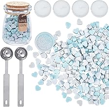 CRASPIRE シーリングワックス セット 約230個 ワックスビーズ 3色 ハート形 小粒 スプーン ティーキャンドル 溶融 蝋封 結婚式 招待状 祝福 告白 祝い 手紙 シーリングスタンプ用 初心者 収納ボトル付き(青系)